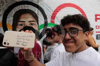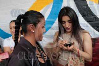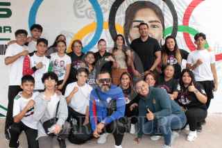 SAN LUIS POTOSÍ, SAN LUIS POTOSÍ, 18AGOST02024.- La boxeadora Fátima Herrera, quien esta de regreso luego de su destacada participación en los Juego Olímpicos París 2024, en donde compitió en la categoría de los 50 kilos cayendo en los octavos de final. La pugilista potosina recibió un homenaje a su trayectoria boxística en las instalaciones del Deportivo Ponciano Arriaga, lugar donde comenzó a entrenar. Ahí se develó un mural en su honor acompañada de vecinos y amigos. Fátima se tomó fotos con los asistentes y firmó autógrafos. FOTO: MARCELO PALACIOS/CUARTOSCURO.COM