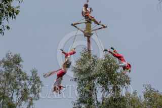 CIUDAD DE MÉXICO, 18AGOSTO2024.- Voladores de Papantla brinda su arte en als inmediaciones del Museo Nacional de Antropología e Historia.