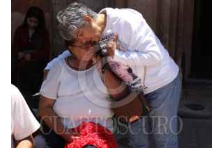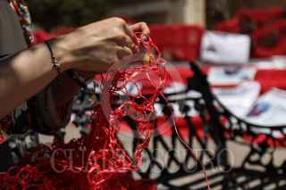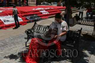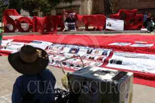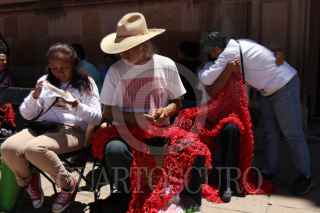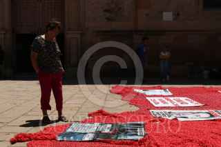 SOMBRERETE, ZACATECAS, 18AGOSTO2024.- Familiares de desaparecidos en el municipio y el estado, en compañía de personas solidarias pertenecientes a la colectiva Sangre de mi Sangre, realizaron una actividad de tejido y sensibilización con la población en la explana de la Parroquia de San Juan Bautista; sobre el problema de la desaparición de personas en la entidad, la cual ha llegado a la cifra de 4 mil desapariciones. FOTO: ADOLFO VLADIMIR /CUARTOSCURO.COM