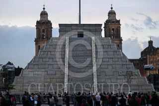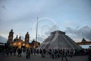 CIUDAD DE MÉXICO, 18AGOSTO2024.- La Secretaría de Cultura de la Ciudad de México informa que este domingo concluyó la exhibición de la réplica de la Pirámide de Kukulcán, que, en conjunto con la X Fiesta de las Culturas Indígenas, Pueblos y Barrios Originarios 2024, recibió a más de 1.6 millones de visitantes desde su inauguración el pasado 12 de julio en el Zócalo capitalino, con el objetivo de celebrar y conmemorar la herencia cultural de la civilización maya. Esta reproducción de 15 metros de altura de la edificación prehispánica conocida como “El Castillo”, que se ubica en la ciudad de Chichén Itzá, en Yucatán, formó parte del espectáculo audiovisual FOTO: GOBIERNO DE LA CIUDAD DE MÉXICO/CUARTOSCURO.COM