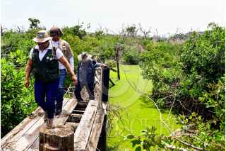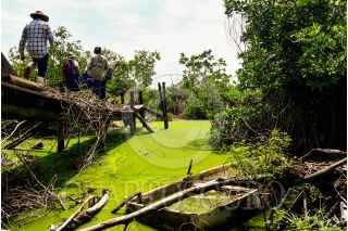 ACAPULCO, GUERRERO. 19AGOSTO2024.- Integrantes de las organizaciones GroBios, Guerrero Jaguar, investigadores de la Universidad Autónoma de Guerrero y habitantes de Puerto Marques, realizaron un recorrido por la Laguna Negra de Puerto Marques, para denunciar el desastre ecológico que causó el huracán Otis y las descargas de aguas negras que hay hacia la laguna, vecinos del lugar comentaron que el lugar era una fuente de ingresos para ellos por podían realizar recorridos a turistas mostrándose la biodiversidad de la zona, duanrte el recorrido también se pudo observar la afección en los manglares que fueron destruidos por los fuertes vientos del huracán Otis, tanto organizaciones como habitantes pidieron a las autoridades para poder recuperar esta importante laguna que rica en biodiversidad. FOTO: CARLOS CARBAJAL/CUARTOSCURO.COM