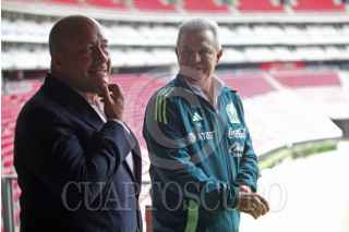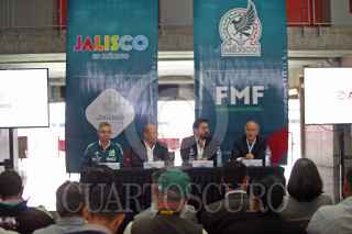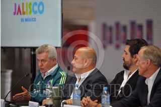 ZAPOPAN, JALISCO. 19AGOSTO2024.- Javier Aguirre, Director Técnico de la Selección Mexicana, Enrique Alfaro, Gobernador del Estado, Amaury Vergara, Presidente del Club Guadalajara e Ivar Sisniega, Presidente de la FMF, encabezaron la conferencia de prensa para anunciar el duelo amistoso entre la Selección Mexicana contra su similar Estados Unidos el próximo Octubre en el estadio Akron. FOTO: FERNANDO CARRANZA GARCIA / CUARTOSCURO.COM