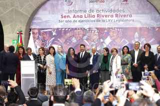 CIUDAD DE MÉXICO, 19AGOSTO2024.- Jesús Ramírez Cuevas, Vocero de la Presidencia, y Martí Batres, Jefe de Gobierno, asisitieron al informe de actividades de Ana Lilia Rivera Rivera, senadora por Tlaxcala y actual Presidenta de la Mesa Directiva del Senado, que se llevó a cabo en la vieja casona de Xiconténcatl.. FOTO: J. GUADALUPE PÉREZ/CUARTOSCURO.COM