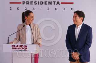 CIUDAD DE MÉXICO, 20AGOSTO2024.- Mario Delgado, próximo secretario de Educación Pública, y Claudia Sheinbaum, virtual presidenta electa, durante su llegada a la conferencia de prensa en la Casa de Transición, en la alcaldía Iztapalapa. FOTO: GRACIELA LÓPEZ /CUARTOSCURO.COM
