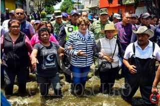 CHALCO, ESTADO DE MÉXICO. 20AGOSTO2024.- La Gobernadora del Estado de México, Delfina Gómez, acudió al municipio que se encuentra inundado desde hace más de 15 días. La mandataria acompañada de vecinos escucho las necesidades los pobladores los que la mayoría perdió todo incluídas sus viviendas. FOTO: GOBIERNO DEL ESTADO/CUARTOSCURO.COM