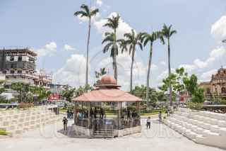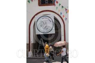 ©TAPACHULA, CHIAPAS, 20AGOSTO2024.- En la Iglesia de San Agustín colocaron una lona con la leyenda “PAZ para Chiapas”, esto ante la ola de inseguridad que se ha vivido en Tapachula. La policía estatal ha incrementado los rondines en las principales calles para brindarle seguridad a la comunidad, quienes a pesar de todo salen hacer sus tareas cotidianas. FOTO: DAMIÁN SÁNCHEZ/CUARTOSCURO.COM