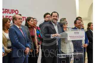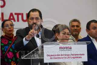 TOLUCA, ESTADO DE MÉXICO, 21AGOSTO2024.- Francisco Vázquez Rodríguez fue presentado como el nuevo Coordinador del Grupo Parlamentario de MORENA para la LXII Legislatura del Estado de México, Maurilio Hernández será presidente de la Mesa Directiva, la conferencia de prensa fue encabezada por Martha Guerrero dirigente estatal del Movimiento de Regeneración Nacional en el Edoméx. FOTO: CRISANTA ESPINOSA AGUILAR /CUARTOSCURO.COM
