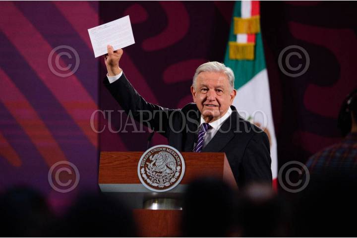 CIUDAD DE MÉXICO, 22AGOSTO2024.- Andrés Manuel López Obrador, Presidente de México, evito hablar sobre la carta que escribió sobre su persona y desempeño como Jefe del Ejecutivo el Sub Comandante Marco, solo señaló "Él debe ser Zapata", esto durante la mañanera. FOTO: PRESIDENCIA/CUARTOSCURO.COM