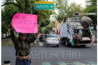 CIUDAD DE MÉXICO, 22AGOSTO2024.- Una mujer llevó un cartel que dice “Ni un edificio más. Roma de mi corazón” durante una protesta de los habitantes de las colonias Roma Norte y Roma Sur para exigir al presidente Andrés Manuel López Obrador y a al Instituto de Bellas Artes y Literatura (INBAL) que declaren estas colonias como “Zonas de Monumentos Artísticos”, con el propósito de protegerlas de las construcciones inmobiliarias y de los cambios de usos de suelo. Además, pidieron al alcalde de Cuauhtémoc, Raúl Ortega, la suspensión temporal de las construcciones en curso hasta la revisión de los permisos, ya que aseguran que muchos antros y restaurantes no cuentan con la debida autorización, y esas construcciones son, según ellos, favorece la escasez de agua y el incremento de la delincuencia. FOTO: ALICE MORITZ/CUARTOSCURO.COM