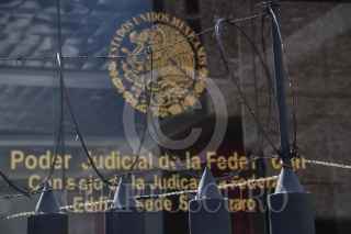 CIUDAD DE MÉXICO, 22AGOSTO2024.- Alambres de púas en la fachada principal del Poder Judicial de la Federación (PJF) sede del Consejo de la Judicatura Federal (CJF) San Lázaro, en donde trabajadores se manifiestan en contra de la iniciativa de reforma al Poder Judicial. FOTO: MARIO JASSO/CUARTOSCURO.COM