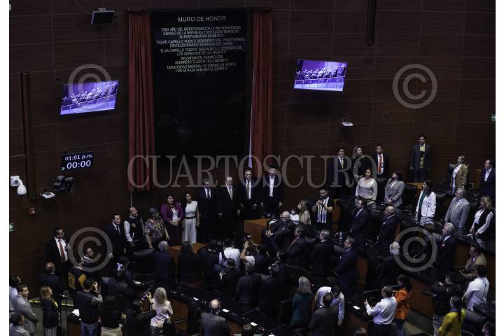 CIUDAD DE MÉXICO, 22AGOSTO2024.-Ceremonia Solemne de la develación de la inscripción en el Muro de honor de la leyenda “Universidad Nacional Autónoma de México. Por mi raza hablará el espíritu” que se llevó a cabo en el pleno de la Cámara de Senadores. FOTO: ANDREA MURCIA /CUARTOSCURO.COM
