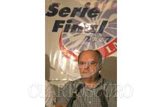 MERIDA, YUCATAN, 24AGOSTO2007.- El Presidente de la Liga Mexicana de Béisbol (LMB) Plinio Escalante en rueda de prensa explica el porque de la suspensión del tercer juego de la Serie Final entre los Leones de Yucatá contra los Sultanes de Monterrey. FOTO: MARCO POLO GUZMÁN HERNÁNDEZ/CUARTOSCURO.COM