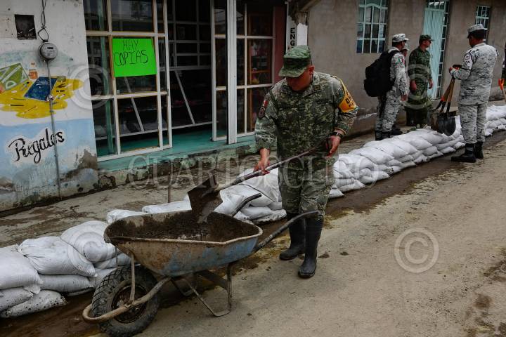CHALCO, ESTADO DE MÉXICO, 22AGOSTO2024.- Elementos del Ejercito Mexicano han implementado el Plano DN -III-E, en las calles inundandas por aguas negras y pluviales de las colonias Jacalones y Culturas Mexicanas, condición que ya cumple 21 días. Los soldados recorrieron por las casas para entregar víveres, agua, transportar personas que necesitaban salir de sus casas y atención médica, además se han sumado a los trabajos de desazolve. FOTO: ROGELIO MORALES/CUARTOSCURO.COM