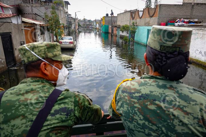 CHALCO, ESTADO DE MÉXICO, 22AGOSTO2024.- Elementos del Ejercito Mexicano han implementado el Plano DN -III-E, en las calles inundandas por aguas negras y pluviales de las colonias Jacalones y Culturas Mexicanas, condición que ya cumple 21 días. Los soldados recorrieron por las casas para entregar víveres, agua, transportar personas que necesitaban salir de sus casas y atención médica, además se han sumado a los trabajos de desazolve. FOTO: ROGELIO MORALES/CUARTOSCURO.COM