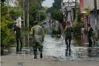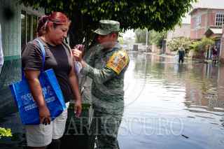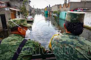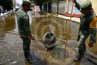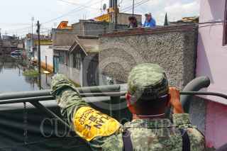 CHALCO, ESTADO DE MÉXICO, 22AGOSTO2024.- Elementos del Ejercito Mexicano han implementado el Plano DN -III-E, en las calles inundandas por aguas negras y pluviales de las colonias Jacalones y Culturas Mexicanas, condición que ya cumple 21 días. Los soldados recorrieron por las casas para entregar víveres, agua, transportar personas que necesitaban salir de sus casas y atención médica, además se han sumado a los trabajos de desazolve. FOTO: ROGELIO MORALES/CUARTOSCURO.COM