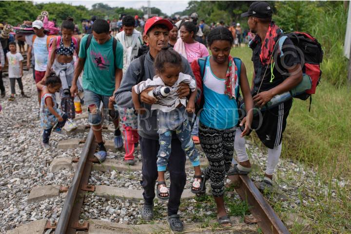 COATZACOALCOS, VERACRUZ, 22AGOSTO2024.- La caravana migrante "Jesucristo" ha arribado al municipio de Sayula de Alemán, en el sur de Veracruz. Este jueves 22 de agosto el grupo decidió ingresar a la comunidad de Medias Aguas, donde se encuentran analizando qué ruta seguir rumbo al norte del país y si es factible el tren. José, el encargado de la caravana, ha expresado la preocupación que impera entre los migrantes debido a la escasez de recursos básicos como agua y comida que ha puesto en riesgo la salud de los integrantes de la caravana sobre todo de los niños. En medio de estas dificultades, la caravana Jesucristo está evaluando la posibilidad de subirse al tren, una opción conocida entre los migrantes como "La Bestia". Aunque esta ruta podría acelerar su avance, todos en la caravana son conscientes de los peligros que implica. FOTO: ÁNGEL HERNÁNDEZ/CUARTOSCURO.COM
