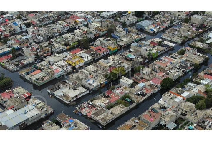 CHALCO, ESTADO DE MÉXICO, 22AGOSTO2024.- Imágenes aéreas de las colonias Culturas Mexicanas y Jacalones en Chalco, donde se cumplen veintiún días de las inundaciones con aguas negras en las viviendas de la zona. FOTOS: ROGELIO MORALES /CUARTOSCURO.COM