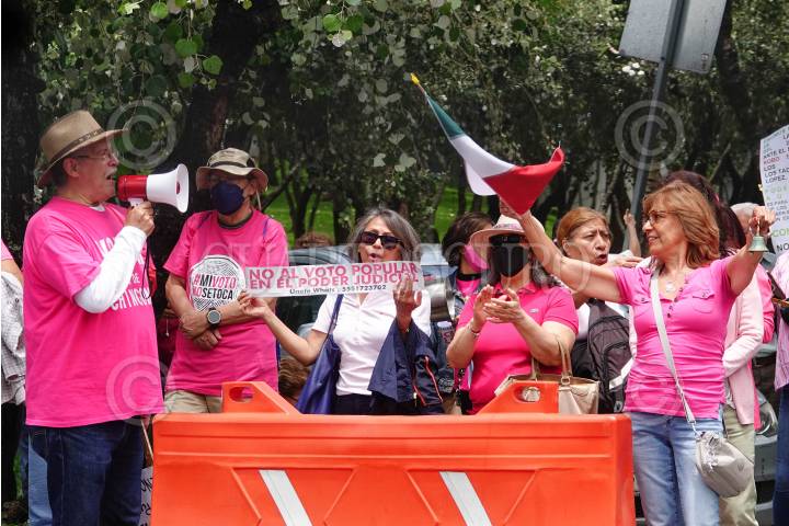 CIUDAD DE MÉXICO, 23AGOSTO2024.- Simpatizantes de la llamada Marea Rosa se manifestaron frente a las instalaciones del Instituto Nacional Electoral, esto durante la sesión extraordinaria del INE donde se definía el proyecto para la asignación de la diputaciones y senadurías por el principio de representación proporcional. FOTOS: ROGELIO MORALES /CUARTOSCURO.COM