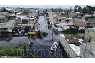 CHALCO, ESTADO DE MÉXICO, 23AGOSTO2024.- Toma aérea de la colonia Culturas Mexicanas en Chalco en donde elementos de la Secretaría de la Defensa Plan DN-III-E y Cruz Roja Mexicana brindan atención a los habitantes afectados. Hoy se cumplen veintidós días de las inundaciones con aguas negras. FOTO: MARIO JASSO/CUARTOSCURO.COM