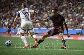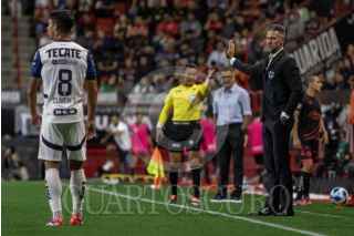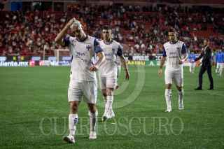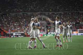 TIJUANA, BAJA CALIFORNIA, 23AGOSTO2024.-Equipo de Monterrey celebrado después de anotar su primer gol durante e partido Xolos contra Los Rayados. Xolos de Tijuana y Los Rayados de Monterrey quedaron en empate durante el partido de la jornada 8 Apertura Liga Mx llevado a cabo en el estadio Caliente. Pese a que los Rayados iniciaron con la delantera, los perros no bajaban la guardia y mantenían la defensa, hasta que en el segundo tiempo lograron meter su segundo gol, con el que parecía que se llevarían la victoria. Sin embargo embargo previo a cerrar los 90 minutos del juego, el árbitro indicó tiempo adicional y fue justo en el último minuto que Tijuana salvo la noche. FOTO: OMAR MARTÍNEZ/ CUARTOSCURO.COM