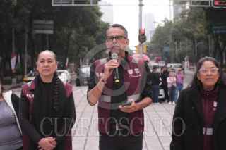 CIUDAD DE MÉXICO, 24AGOSTO2024.- Durante la foto de graduación en el Ángel de la Independencia, Javier Hidalgo, coordinador del Subsistema de Educación Comunitaria "PILARES", ofrece unas palabras a los alumnos recién graduados de la preparatoria "PILARES". FOTO: DANIEL YÁÑEZ/CUARTOSCURO.COM