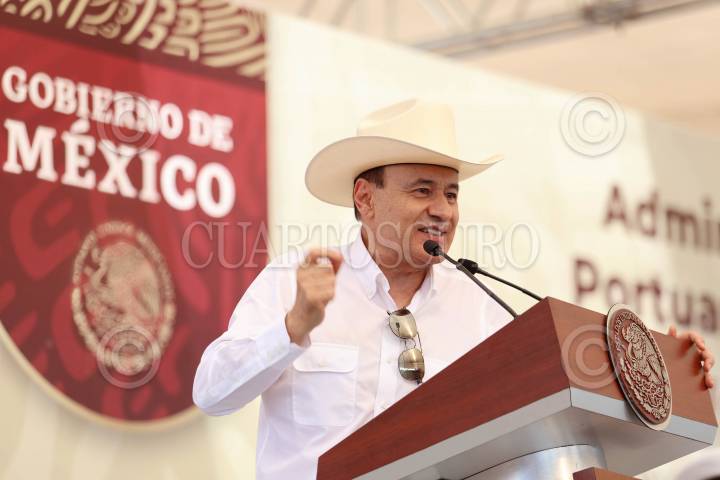 GUAYMAS, SONORA, 24AGOSTO2024.- Alfonso Durazo, gobernador de Sonora, durante el evento de administración del Sistema Portuario Nacional – Guaymas e inauguración de obras en la Plaza de los Tres Presidentes. FOTO: PRESIDENCIA/CUARTOSCURO.COM