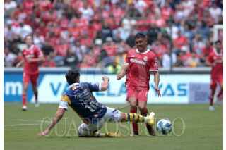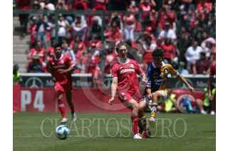 TOLUCA, ESTADO DE MÉXICO, 25AGOSTO2024.- Marcel Ruiz medio de los Diablos de Toluca y Luis Nájera medio del Atlético de San Luis en el partido correspondiente a la jornada 5 del Tornero Apertura 2024 de la LIGA MX, el encuentro tuvo un marcador final 2-1. FOTO: CRISANTA ESPINOSA AGUILAR /CUARTOSCURO.COM