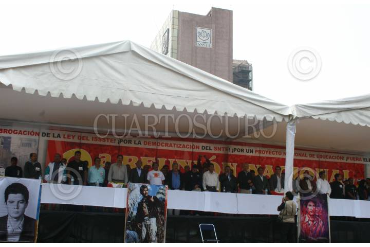 MÉXICO, D.F., 25AGOSTO2007.-Integrantes y dirigentes del CNTE realizáron su 2 Reunión Nacional, en el monumeto a la revolución donde manifestaron su recházo a la ley del ISSSTE FOTO:SASHENKA GUTIERREZ/CUARTOSCURO.COM
