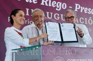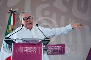 EL ROSARIO, SINALOA, 25AGOSTO2024.- Rubén Rocha Moya, gobernador de Sinaloa, durante la inauguración del distrito de riego de la presa “Picachos”. FOTO: PRESIDENCIA/CUARTOSCURO.COM