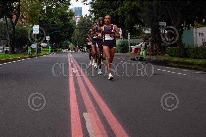 CIUDAD DE MÉXICO, 25AGOSTO2024.- En punto de las 05:45 horas, dio inicio la XLI edición del Maratón de la Ciudad de México Telcel 2024, en donde 30 mil corredoras y corredores de todo el mundo recorrieron las vialidades principales de la capital del país, así como monumentos emblemáticos, en la fiesta deportiva más grande del año. Los deportistas conquistaron la ruta de 42.195 km desde el Estadio Olímpico Universitario, pasando por la Avenida de los Insurgentes, las colonias Nápoles, Chapultepec, Roma, Condesa y Polanco, para avanzar por Avenida Paseo de la Reforma, Avenida Juárez y culminar el recorrido en el corazón de la Ciudad de México, el Zócalo capitalino. El podio varonil estuvo conformado por atletas Kenianos, en primer lugar el maratonista de 31 años, Edwin Kiprop Kiptoo; en segunda posición, Leonard Langat, de 28 años, y en tercero Francis Cheruiyot, de 30 años, que se colocó en el tercer peldaño. En la rama femenil, la corredora que aseguró el primer lugar, originaria de Kenia, fue Fancy Chemutai, de 30 años; seguida de Shitaye Eshete Habte, de 34 años, proveniente de Bahrain, y en tercer lugar, Janet Ruguru Gichumbi, la keniana de 31 años que completó el podio. FOTO: GOBIERNO DE LA CIUDAD DE MÉXICO/CUARTOSCURO.COM