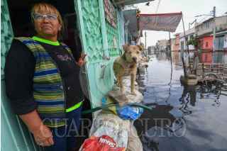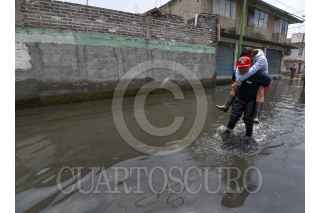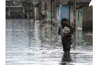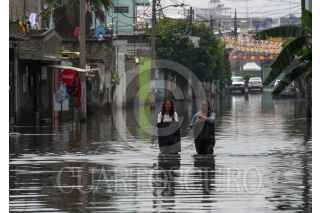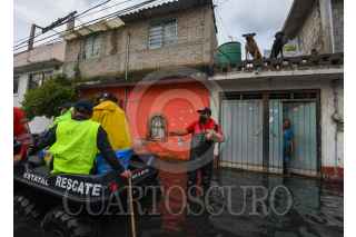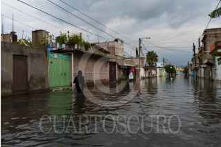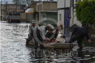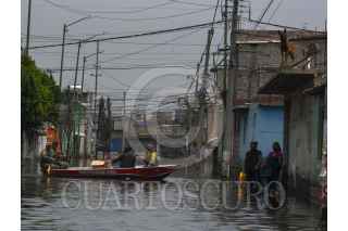 CHALCO, ESTADO DE MÉXICO, 25 AGOSTO2024.- Las lluvias no dan tregua a los habitantes de las colonias Culturas de México y Jacalones en Chalco que cumplen 24 días bajo aguas negras, el nivel que había bajado en algunas zonas subió de nueva cuenta después de las lluvias registradas este fin de semana, vecinos salen a conseguir alimentos apoyándose de lanchas que permiten llegar a lugares secos o con botas y trajes para inundaciones. FOTO: CRISANTA ESPINOSA AGUILAR /CUARTOSCURO.COM