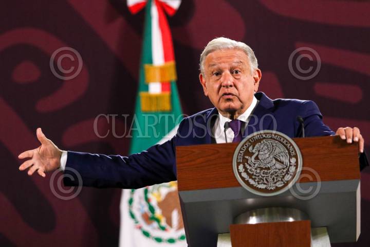 CIUDAD DE MÉXICO, 26AGOSTO2024.- Andrés Manuel López Obrador, Presidente de México, encabezó su tradicional mañaneras en Palacio Nacional. El Ejecutivo habló sobre las declaraciones de Tomas Zerón en torno al caso de la desaparición de los 43 normalistas de Ayotzinapa. Además mostró mensajes de Héctor Aguilar Camino, Enrique Krauze, en donde afirman que México regresara a una monarquía, esto a la recién aprobación por parte del INE de las mayorias en las Cámaras de Diputados y Senado, las cuales encabeza Morena. FOTO: MOISÉS PABLO/CUARTOSCURO.COM