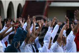 CUERNAVACA, MORELOS, 26AGOSTO2024.- En Morelos mas de 500 mil alumnos y alumnas, personal docente y administrativo regresaron a las aulas para iniciar el ciclo escolar 2024-2025. En la imagen alumnos realizan los Honores a la Bandera en la escuela primaria Benito Juárez. FOTO: MARGARITO PÉREZ RETANA/CUARTOSCURO.COM