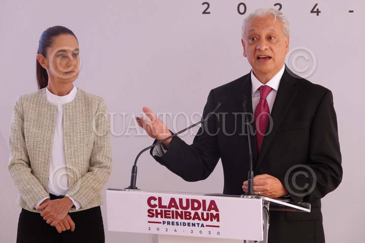 CIUDAD DE MÉXICO, 26AGOSTO2024.- Claudia Sheinbaum, virtual presidenta electa, y Víctor Rodríguez Padilla, próximo director de PEMEX, durante la onferencia de prensa en la Casa de Transición, ubicada en la alcaldía Iztapalapa. FOTO: GRACIELA LÓPEZ /CUARTOSCURO.COM