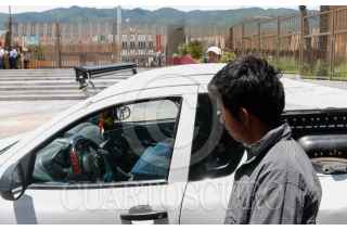 CHILAPA DE ÁLVAREZ, GUERRERO. 26AGOSTO2024.- El cuerpo de una recién nacida dentro de un féretro de color blanco, fue llevado hasta la entrada del Recinto Oficial del Poder Ejecutivo por su padre quien es originario de la comunidad de Ahuexotitlán del municipio de Chilapa de Álvarez. Dentro de los que se encontraba Alejandro Aguilar Díaz quien dentro de una camioneta llevaba un pequeño féretro de color blanco llevaba el cuerpo de su pequeña hija recién nacida, quien asegura que murió por negligencia médica del Hospital Comunitario del municipio de Quechultenango. FOTO: DASSAEV TÉLLEZ/CUARTOSCURO.COM