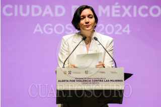 CIUDAD DE MÉXICO, 26AGOSTO2024.- Ingrid Gómez, secretaria de la Cultura; durante el informe mensual de resultados de la Alerta por Violencia contra las Mujeres, que se llevo acabo en el Teatro Metropólitan. FOTO: GOBIERNO DE LA CIUDAD/CUARTOSCURO.COM