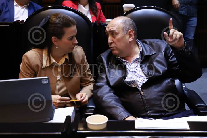 CIUDAD DE MÉXICO, 26AGOSTO2024.- Los diputados priístas, Carolina Viggiano y Rubén Moreira, hablan durante la sesión de la Comisión de Puntos Constitucionales. FOTO: DANIEL AUGUSTO/ CUARTOSCURO.COM