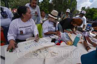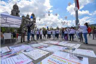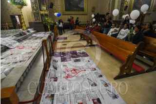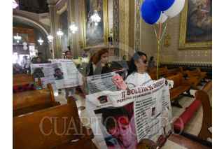 TOLUCA, ESTADO DE MÉXICO, 26AGOSTO2024.- Familias de personas desaparecidas, víctimas de feminicidio e integrantes del Colectivo Flores en el Corazón AC en el marco del Día Internacional de las Personas Desaparecidas acudieron a misa en la Iglesia de la Santa Veracruz en Toluca para exigir justicia y se de con sus desparecidos, soltaron globos blancos en la Plaza de los Mártires y realizaron bordados en recuerdo de sus familiares. FOTO: CRISANTA ESPINOSA AGUILAR /CUARTOSCURO.COM