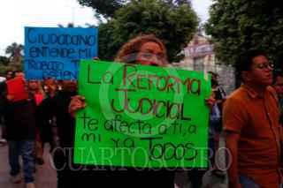 CHILPANCINGO, GUERRERO, 26AGOSTO2024.- Trabajadores del Poder Judicial de la Federación (PJF) de Guerrero, acompañados de trabajadores del Tribunal Judicial estatal y del Colegio de Abogados de Guerrero, marcharon por Chilpancingo para sumarse a las actividades del paro nacional de labores en contra de la Reforma presentada por el Presidente Andrés Manuel López Obrador. Minutos antes de las 7 de la noche, un centenar de trabajadores del Poder Judicial iniciaron una marcha del hemiciclo a Juárez (conocido como 'Las Banderas'), hacia Ciudad Universitaria Sur (C. U. Sur). El magistrado Jerónimo José Martínez, afirmó que la lucha continuará en todo el país, a través de acciones como el paro, campañas de información y otras actividades; hasta el momento no hay resultados favorables con el enlace nacional que conformaron trabajadores del Poder Judicial con legisladores. FOTO: DASSAEV TÉLLEZ ADAME/CUARTOSCURO.COM