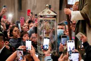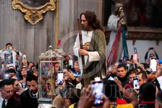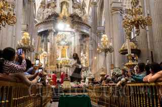 PUEBLA, PUEBLA, 27AGOSTO2024.- Poblanos visitan las reliquias de San Judas Tadeo en la catedral metropolitana, las cuales permanecerán en la capital hasta el 29 de agosto. FOTO: MIREYA NOVO/ CUARTOSCURO.COM
