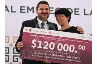 CIUDAD DE MÉXICO, 27AGOSTO2024.- Martí Batres Guadarrama, jefe del Gobierno de la Ciudad; en la explanada del monumento a la Revolución entrego apoyos economicos de fomento al empleo. El mandatario indico: que hoy se da un nuevo paso, un paso más de trabajo con mucha gente y por esas razones se están creando 120 cooperativas el día de hoy, y para su creación reciben 80 mil pesos. Son 120 cooperativas con cinco integrantes cada una, cooperativas que empiezan con su actividad económica, algunas de ellas con temas de ropa o artículos de vestir para las mujeres, o comida, cocina, etcétera. Bueno, cada cooperativa tiene sus temas, algunas hasta temas culturales. FOTO: GOBIERNO DE LA CIUDAD/CUARTOSCURO.COM