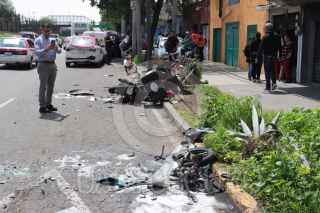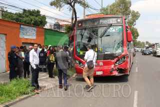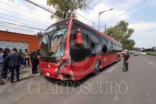 CIUDAD DE MÉXICO, 27AGOSTO2024.- Un Metrobús que se quedó sin frenos provocó una carambola, con saldo de varios carros y motos chocadas, pero ninguna víctima de gravedad. Los hechos en Eje 1 Norte y Santos Dumon, colonia Aviación Civil, Alcaldia Venustiano Carranza. FOTO: ROGELIO MORALES/CUARTOSCURO.CON