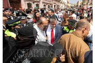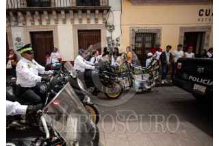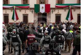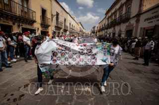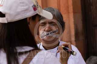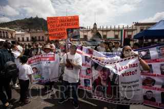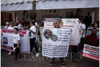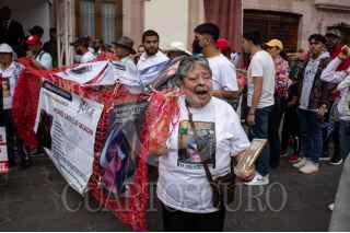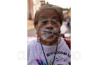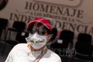 ZACATECAS, ZACATECAS, 16SEPTIEMBRE2023.- Colectivos de familiares de desaparecidos realizaron una manifestación pacífica en silencio, integrándose al final del “Desfile Militar” conmemorativo por el 16 de septiembre. El contingente de aproximadamente 50 madres y familiares caminaban detrás de los Charros, último grupo en el desfile, cuando fueron bloqueadas por policías de tránsito, lo que provocó que ellas decidieran mantenerse frente al templete del gobernador. El mandatario estatal sólo observó, después se retiró sin ninguna palabra, mientras algunas madres le gritaron exigiendo la búsqueda de sus familiares. FOTO: ADOLFO VLADIMIR /CUARTOSCURO.COM