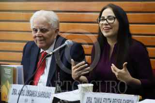 CIUDAD DE MÉXICO, 29AGOSTO2024.- La Dra. Abril Uscanga Barradas, directora del Seminario de Filosofía del Derecho en la UNAM, acompañada del ministro en retiro, Genaro David Góngora Pimentel, presentó el libro "Estado de Derecho, Síntomas de un México Impune". FOTO: DANIEL AUGUSTO/ CUARTOSCURO.COM