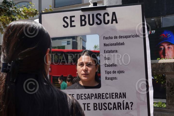 CIUDAD DE MÉXICO, 29AGOSTO2024.- Viviana Mendoza, integrante del colectivo Hasta Encontrarte, se refleja en la ficha de Búsqueda "Si te desaparecieran, ¿Quién te buscaría?", durante un Mensaje de Solidaridad para las mamás buscadoras enfrente de la Glorieta de las y los Desaparecidos. FOTO: GRACIELA LÓPEZ /CUARTOSCURO.COM
