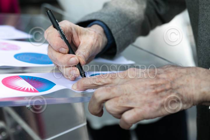 CIUDAD DE MÉXICO, 29AGOSTO204.- Las manos del artista plástico Pedro Friedeberg al finalizar el protocolo de la inauguración de su obra: "Sinfonía de la Vida: Geometrías del Universo", una obra monumental que plasmo en las cupulas del complejo arquitectónico del Museo de Historia Natural y Cultural Ambiental. FOTO: MOISÉS PABLO/CUARTOSCURO.COM