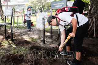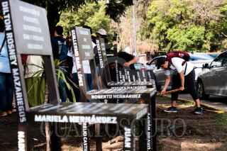 PUEBLA, PUEBLA, 30AGOSTO2024.- Integrantes de la Red En Búsqueda de Desaparecidos colocan anti-monumentos en el Día Internacional de las Víctimas de Desaparición Forzada, frente a la Fiscalía del Estado. FOTO: MIREYA NOVO/ CUARTOSCURO.COM