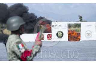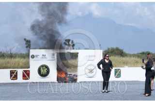 APODACA, NUEVO LEÓN, 30AGOSTO2024.- La Fiscalía General de la República (FGR), a través de su delegación estatal y en coordinación con la SEDENA, incineró más de 264 kilos de droga en Nuevo León, relacionadas con 32 carpetas de investigación, en las inmediaciones de la VII Zona Militar. La droga destruida fue de 234 kilos de marihuana, así como diferentes enervantes como metanfetamina, diacetilmorfina, entre otras sustancias. FOTO: GABRIELA PÉREZ MONTIEL / CUARTOSCURO.COM