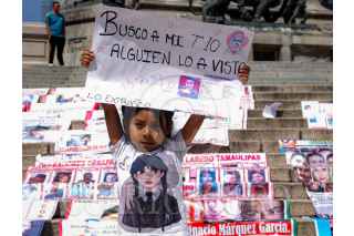 CIUDAD DE MÉXICO, 30AGOSTO2024.- Una niña sostiene un cartel que dice “Busco a mi tío alguien lo ha visto” durante el Día Internacional de las Víctimas de Desaparición Forzada. FOTO: ALICE MORITZ/CUARTOSCURO.COM