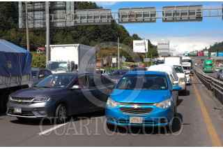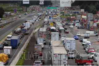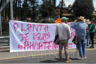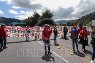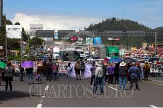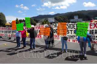 OCOYOACAC, ESTADO DE MÉXICO, 30AGOSTO2024.- Más de 6 horas lleva bloqueada la carretera Toluca-México por comuneros de Acazulco exigiendo el pago de las tierras que fueron usadas para el paso de la obra del Tren Interurbano El Insurgente en la zona de la Marquesa, ocasionando caos vial. FOTO: CRISANTA ESPINOSA AGUILAR /CUARTOSCURO.COM